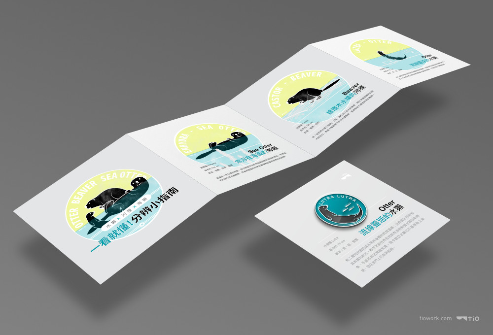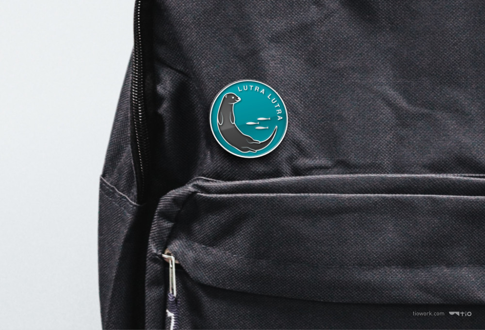 將其中的水獺插圖,延伸設計金屬胸章周邊。因三種動物中,僅有水獺在金門有野生蹤跡。