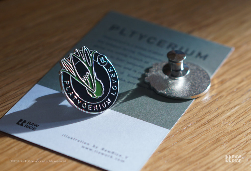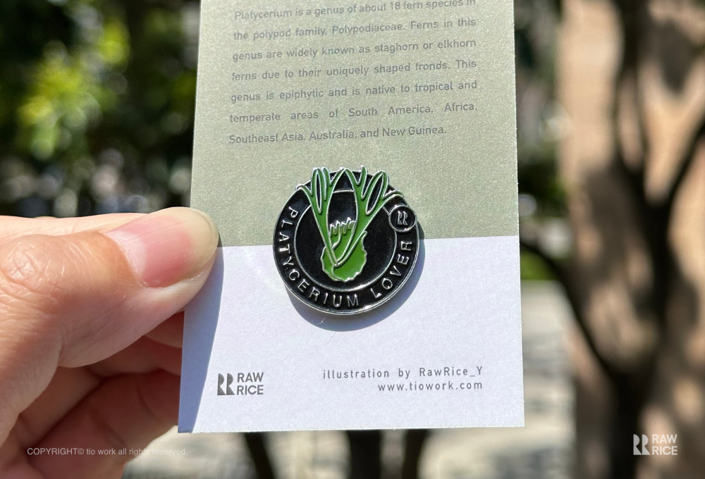 獻給鹿角蕨愛好者的金屬烤漆徽章,選擇了銀鹿鹿角蕨為代表,加上周圍 platycerium lover 文字表現對鹿角蕨植物的喜愛。